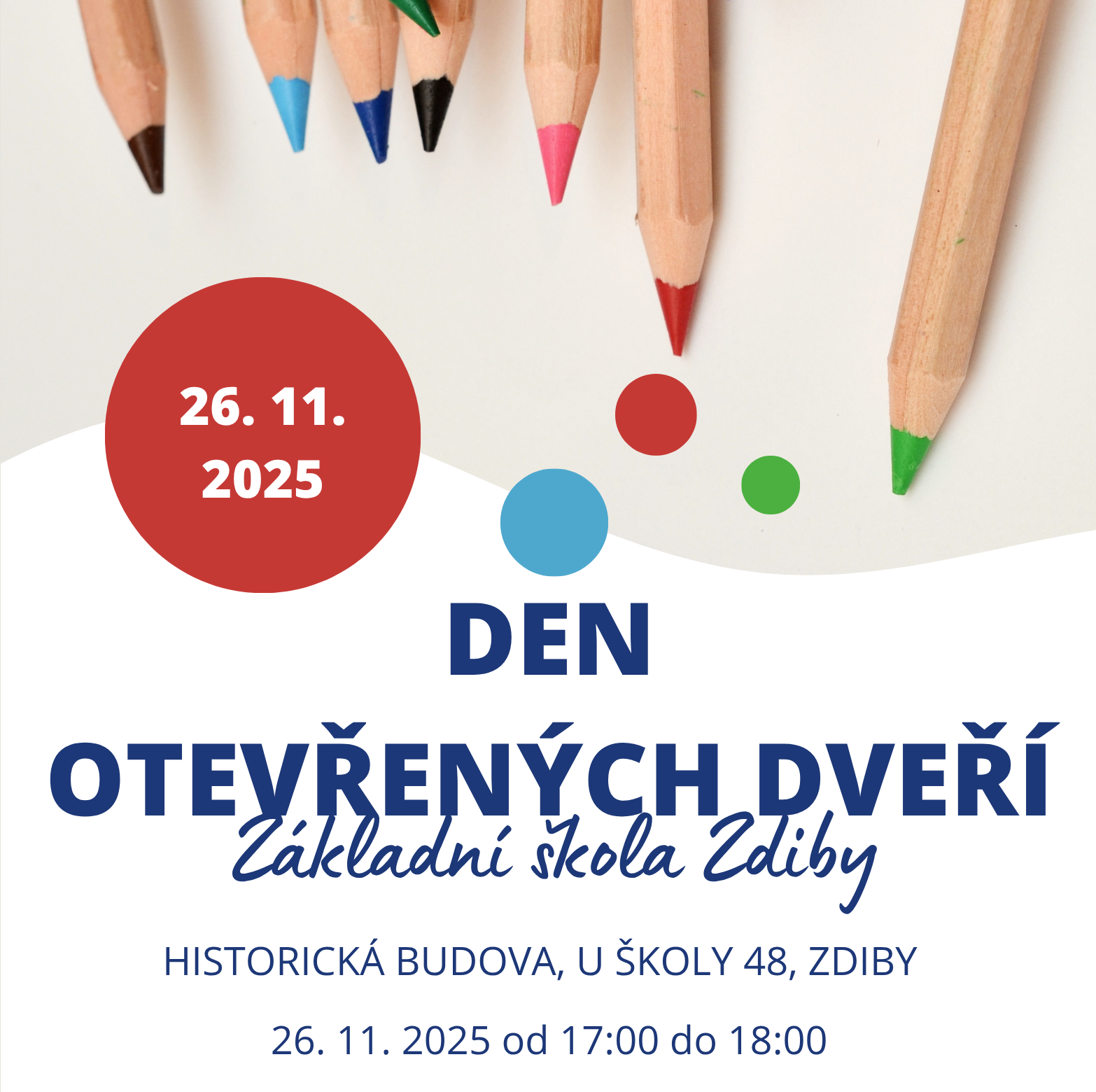 Zveme rodiče budoucích prvňáčků ke dni otevřených dvěří, který proběhne 26. listopadu 2025 od 17:00 do 18:00 v naší historické budově na adrese U Školy 48, Zdiby.